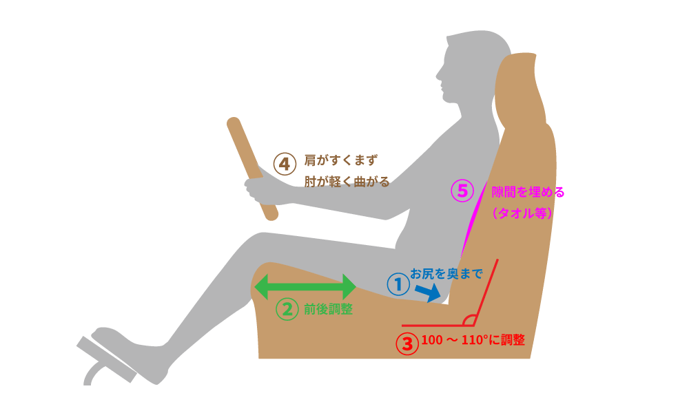 1.シート調整を先に整える(深く座る/背もたれ角度/ハンドル距離)