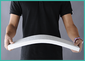 見た目は発泡スチロールと大差なく思われますが、発泡ポリエチレンは耐久性に優れ、高い衝撃吸収力を持っています。曲げても折れることはなく、へたりにくいこの素材だからこそクッションとしての絶妙な硬さを表現することができました。耐久性テスト