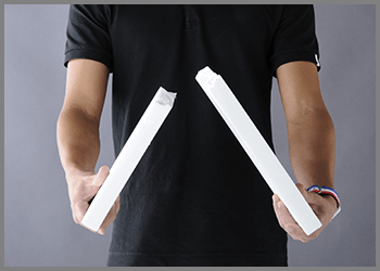 上の写真が発泡ポリエチレン、下の写真が発泡スチロールを折り曲げ耐久性のテストをした時の写真です。